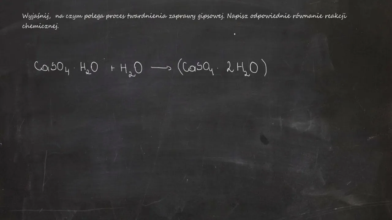 Kluczowe informacje:- Proces twardnienia zaprawy gipsowej polega na reakcji hydratacji gipsu z wodą.